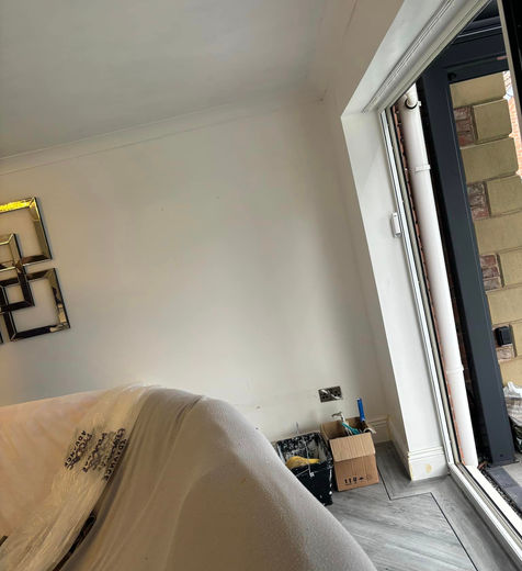 Outcome: The culmination of our efforts resulted in a transformed main living room, characterized by the striking presence of the media wall and the seamless integration of architectural elements. With its freshly painted surfaces, refined coving, and flawlessly repaired ceiling, the room now exudes a sense of sophistication and functionality, serving as a versatile space for relaxation and entertainment.